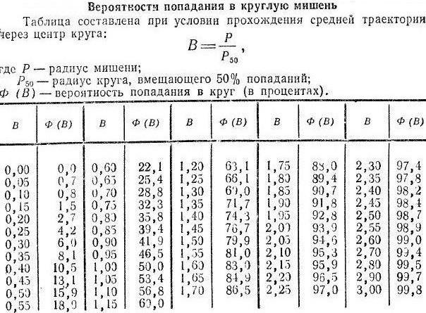 | Вероятность поражения круга, ограниченного габаритом, % | 7,3 | 26,3 | 50,0 | 71,0 | 85,5 | 94,0 | 97,8 | 99,0 | 100 |