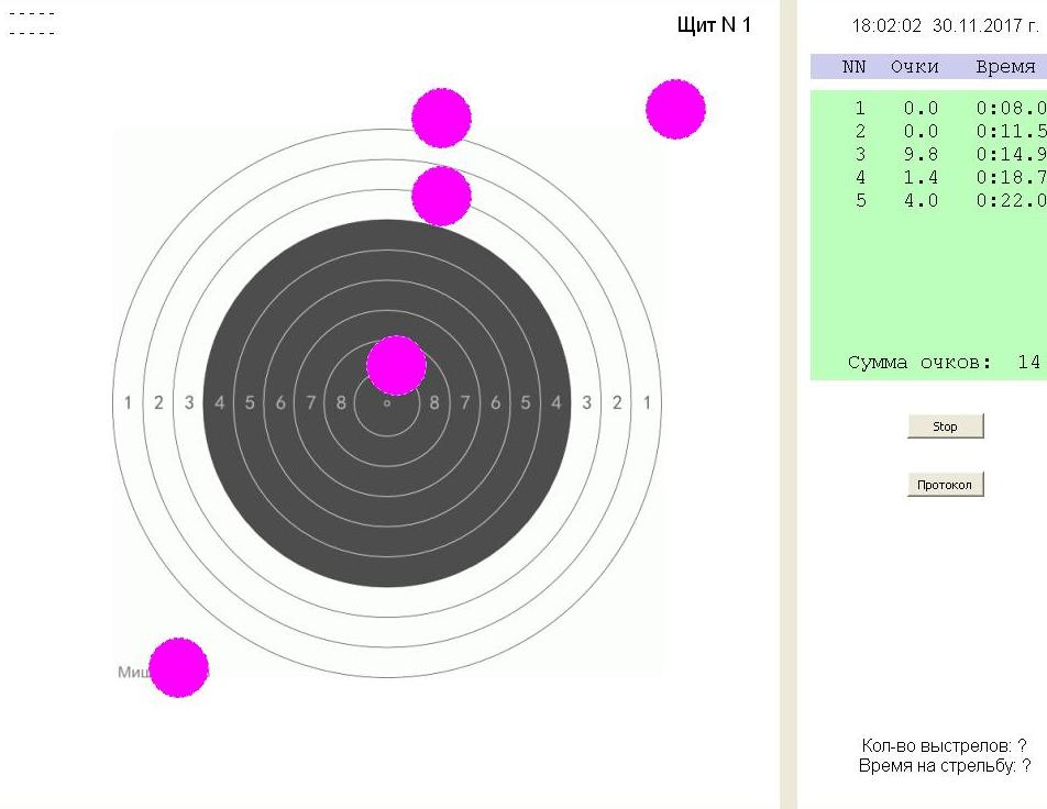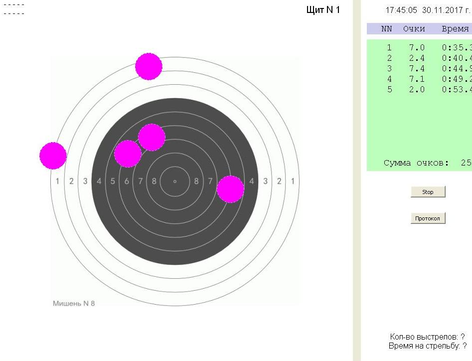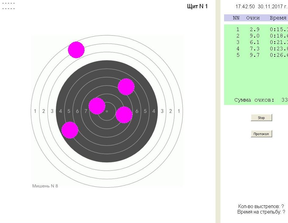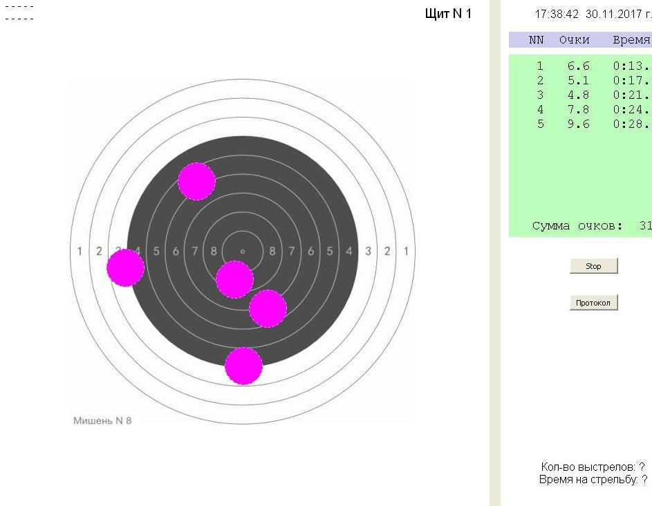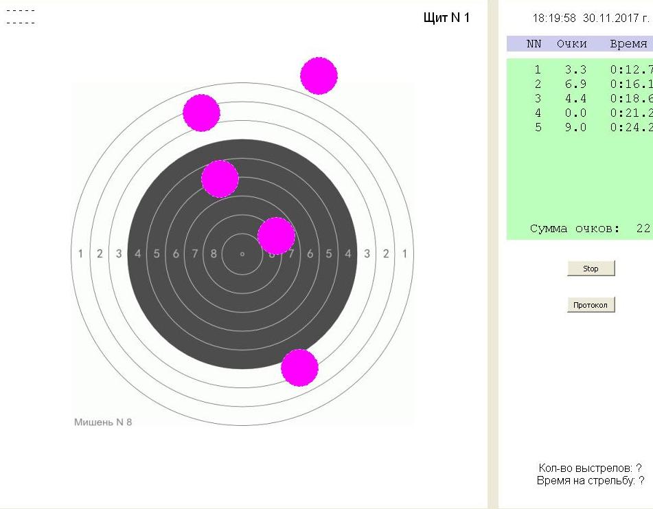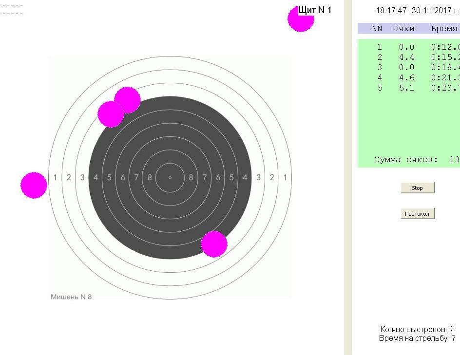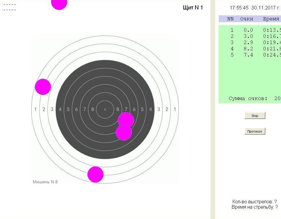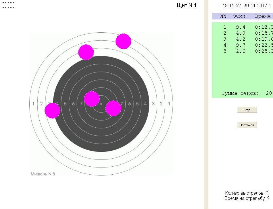 Выводы. Было произведено 26 серий по 5 выстрелов. Несмотря на то, что количество фактически выбитых очков несколько отличалось от теоретически расчитанных, сделанная по количеству попаданий внутрь габарита 5 (что соответствует попаданию в круг диаметром 25,5мм) оценка "незачет", "бронза", "серебро" или "золото" оказалась верной в 25 случаях из 26. В двух случаях оценки по количеству попаданий в круг диаметром 25,5мм оказались заниженными: Серия № 14 - при двух попаданиях, количество фактически выбитых очков 28 и оценка "серебро" оказались выше ожидаемой в случае двух попаданий оценки "бронза".