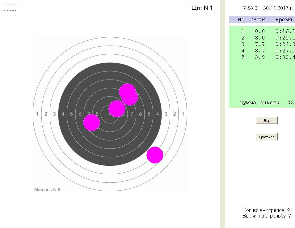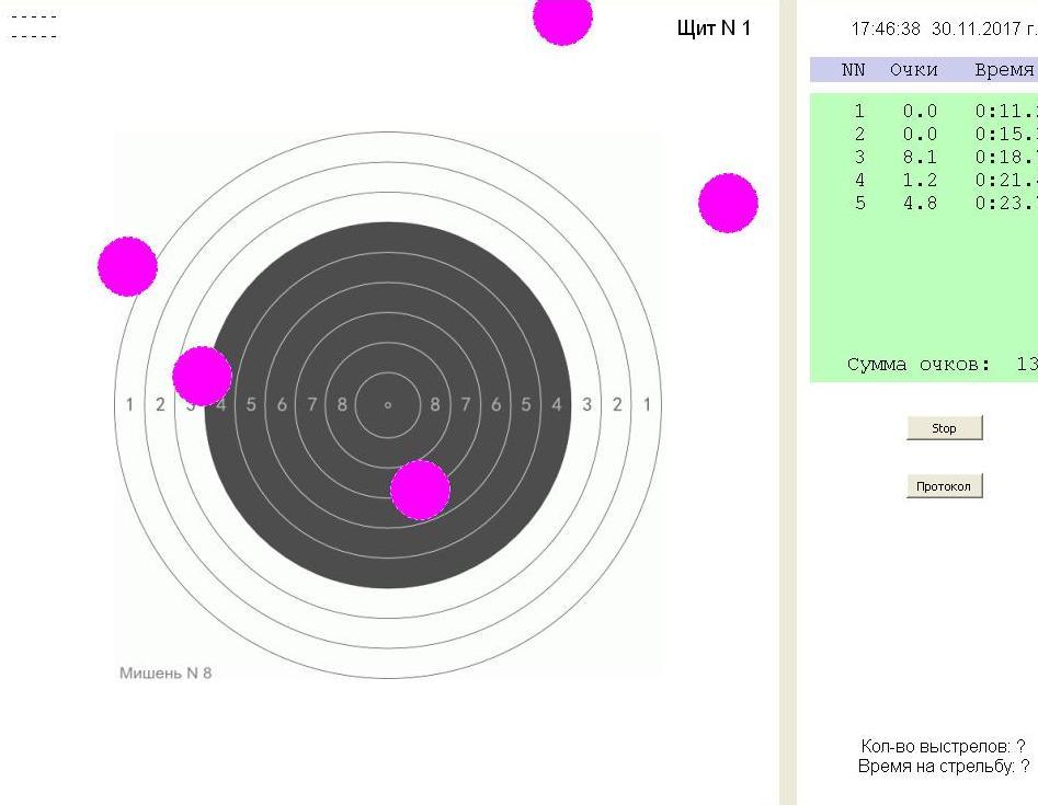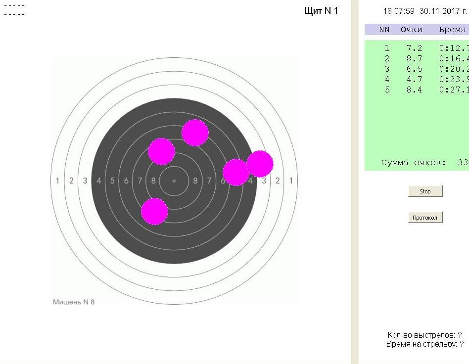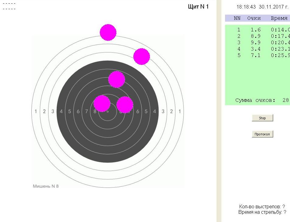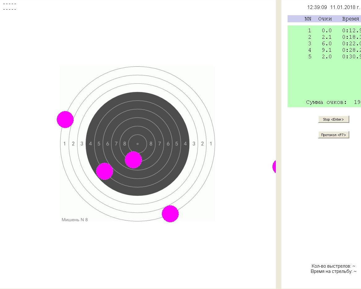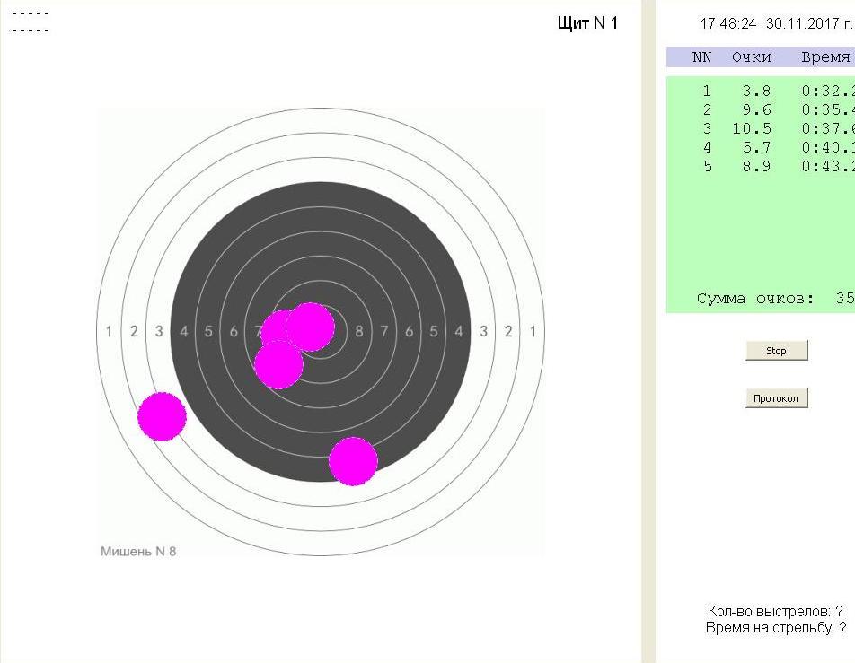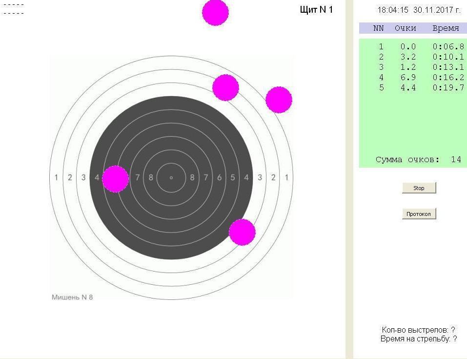 Выводы. Было произведено 26 серий по 5 выстрелов. Несмотря на то, что количество фактически выбитых очков несколько отличалось от теоретически расчитанных, сделанная по количеству попаданий внутрь габарита 5 (что соответствует попаданию в круг диаметром 25,5мм) оценка "незачет", "бронза", "серебро" или "золото" оказалась верной в 25 случаях из 26. В двух случаях оценки по количеству попаданий в круг диаметром 25,5мм оказались заниженными: Серия № 14 - при двух попаданиях, количество фактически выбитых очков 28 и оценка "серебро" оказались выше ожидаемой в случае двух попаданий оценки "бронза".